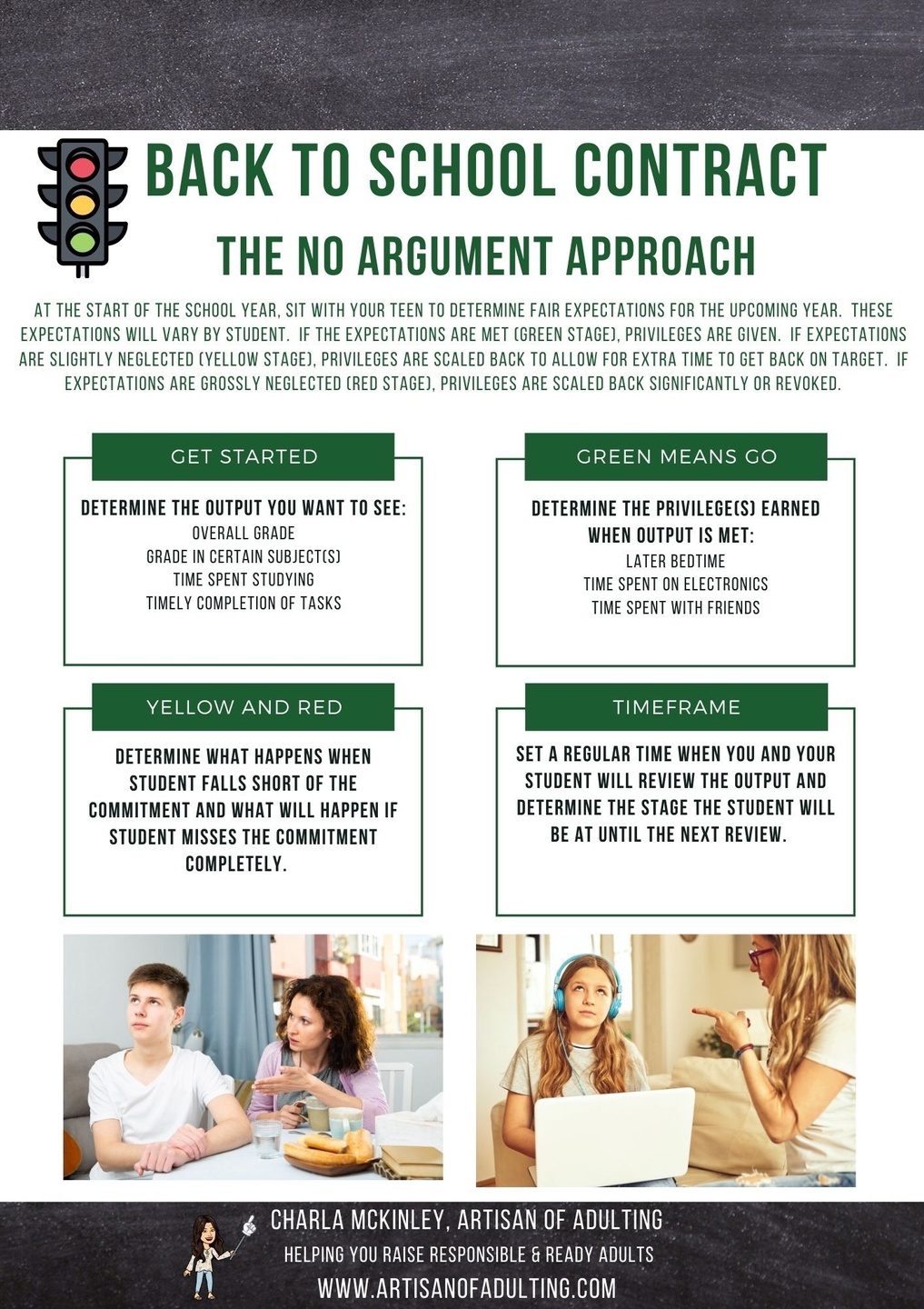 I was so tired of watching my son neglect his school work in favor of video games. The arguments felt endless. That is when I tried a different approach. At the beginning of the school year he and I sat down and agreed on what his goals should be for the year. We also agreed on what privileges he would have if he met those goals. We also talked through what would happen in the event he fell short of the goal. I put those conversations in writing and had us both sign them.